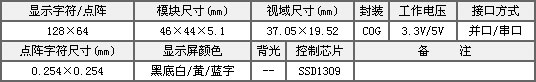 - 描述:顯示點陣:128X64,品牌:金鵬 ,模塊尺寸:46X44X5.1,視域尺寸:37.05X19.52 控制IC:SSD1309 封裝COG 串口/并口,工作電壓3.3V(2.7-3.5),工作溫度-40至70