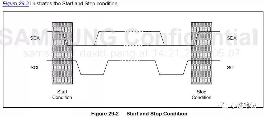 起始條件:當(dāng)IIC接口處于從模式時(shí),要想數(shù)據(jù)傳輸,必須檢測SDA線上的起始條件,起始條件由主器件產(chǎn)生。當(dāng)SCL信號為高時(shí),SDA產(chǎn)生一個(gè)由高變低的電平變化,即產(chǎn)生一個(gè)啟動信號。當(dāng)IIC總線上產(chǎn)生了啟動信號后,這條總線就被發(fā)出起始信號的主器件占用了,變成"忙"狀態(tài)。
